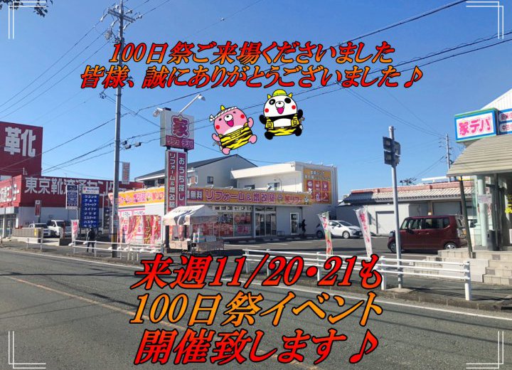 こんにちは♪13日と14日の100日祭イベントが無事に終わりました。少し疲れが残っております…がっ! 沢山のご来場を頂きまして誠にありがとうございました。お見積りをご依頼くださいましたお客様方に100日祭イベント特典を活用させていただきます☘ また11月20日㈯21日㈰と100日祭イベントを開催致します。スタッフ一同、お待ち致しております♪そして精一杯頑張ります!皆様のご来場お待ち致しております♪