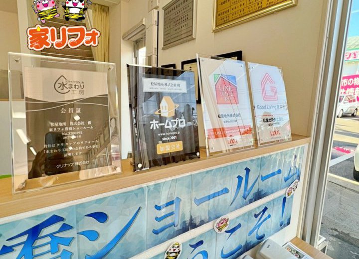 ショールーム入口に加盟店のタテが続々と並んでおります!! 現在並んでいますのは、Good Living友の会、LIXILリフォームネット、ホームプロ、水まわり工房と4枚になります。 リフォームする中でどこのメーカー、どの商品が良いか分からず悩まれる方は少なくありません。 各加盟店ごとに施工事例が載っておりますので、リフォームをお考えの方は見て参考にいかがでしょうか。 もちろん弊社のHPにも施工事例が載っておりますのでご参考にしていただければと思います! ショールームに来られた際は是非見てくださいね♪