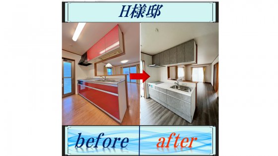 豊川市にお住いのH様は、家リフォに相談にいらっしゃった当初、「レンジフードが掃除しにくく、天板が人造大理石にあこがれているけど予算があまりない」がお悩みでした。