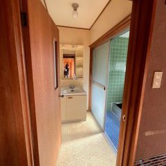 現地調査にお伺いした所、ダブル水栓で、温度の調整が難しく、収納があまりありませんでした。