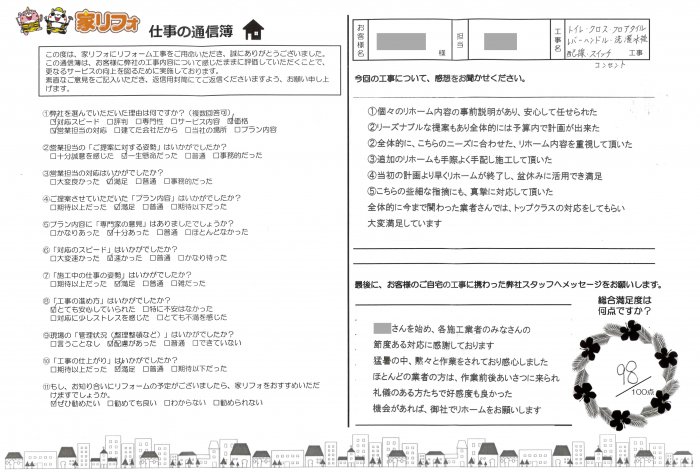 ①個々のリホーム内容の事前説明があり、安心して任せられた
