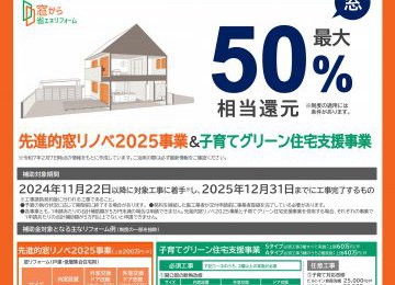 いつも弊社のホームページをご覧いただきましてありがとうございます。 今回は2025年度の補助金制度のご案内です♪ 断熱窓導入集中的支援は、今年で 最終年 と言われています!! 補助金を活用して、お得にリフォームしませんか? 弊社まで、お気軽にお問い合わせください! 家リフォスタッフ一同、ご来店お待ちしております!!