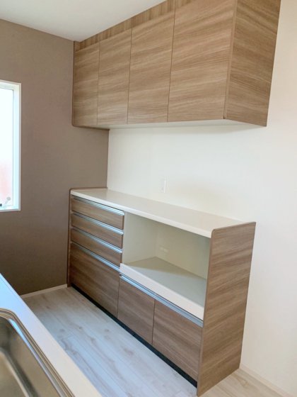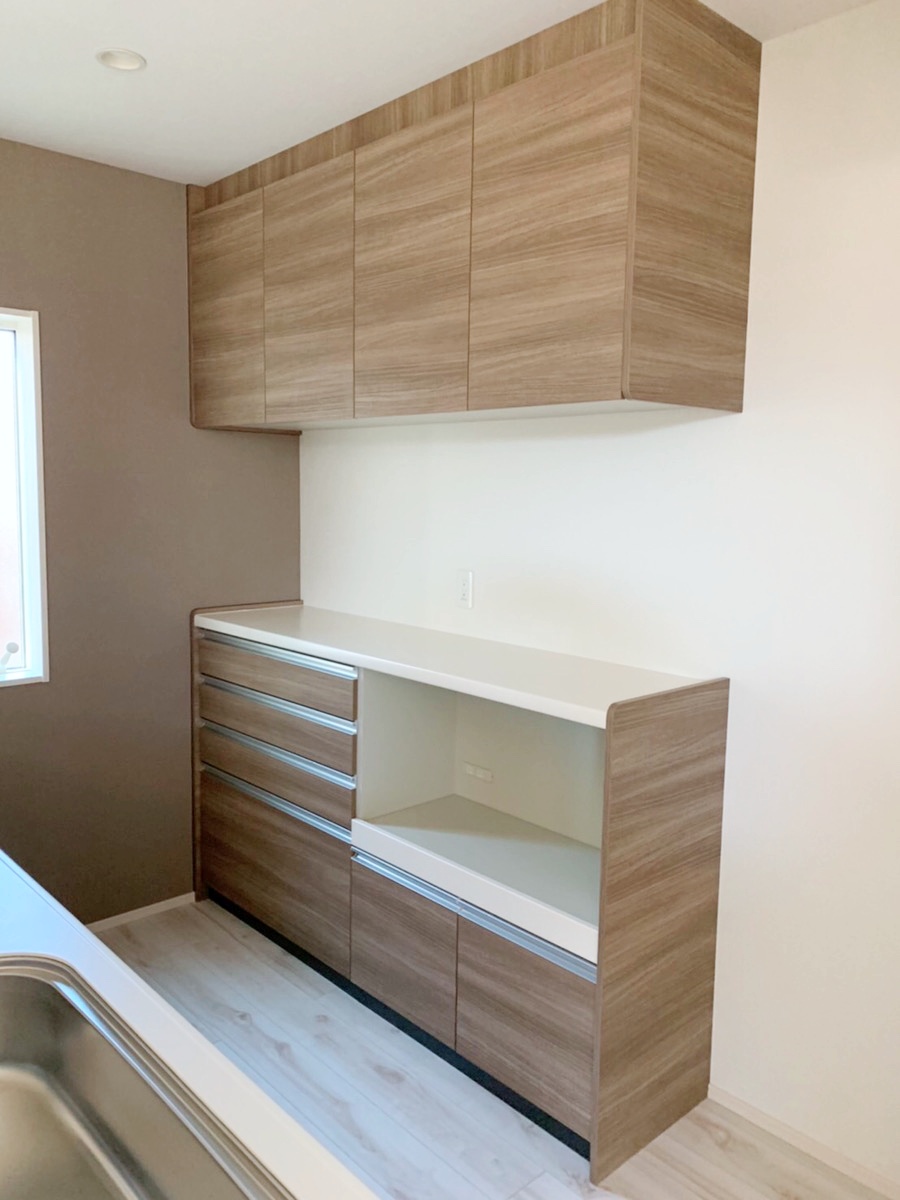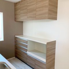 新築を購入したがキッチン収納が少ない為、カップボードを新設したい。
