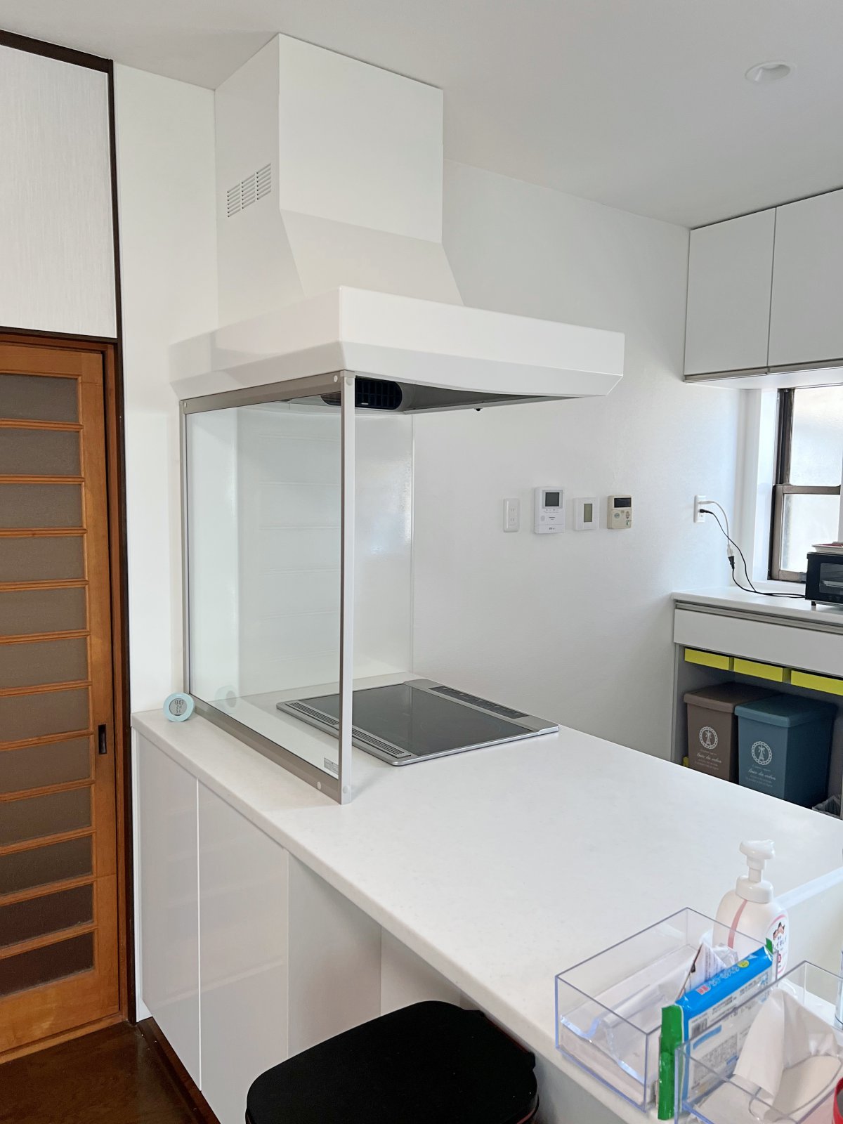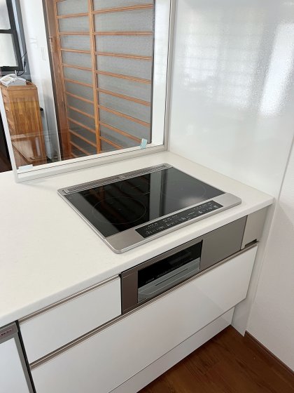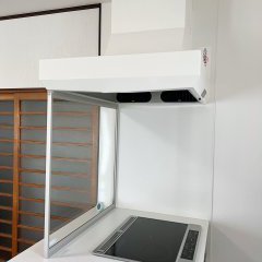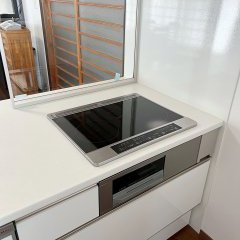 収納や家電の配置も変えてカップボードの設置をしました。