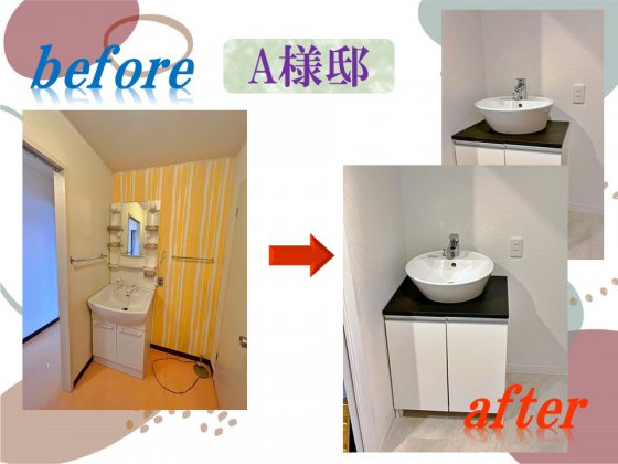 洗面台の入替後のご感想で、「思っていたより安くリフォーム出来て、貸すこともできたので満足」とのお声を頂き、弊社としても大変うれしく思います。