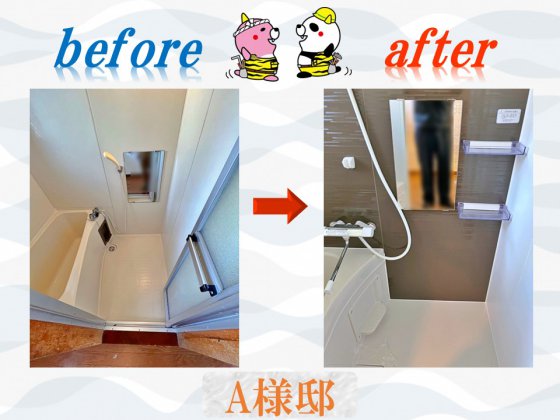 お風呂の入替後のご感想で、「思っていたより安くリフォーム出来て、貸すこともできたので満足」とのお声を頂き、弊社としても大変うれしく思います。
