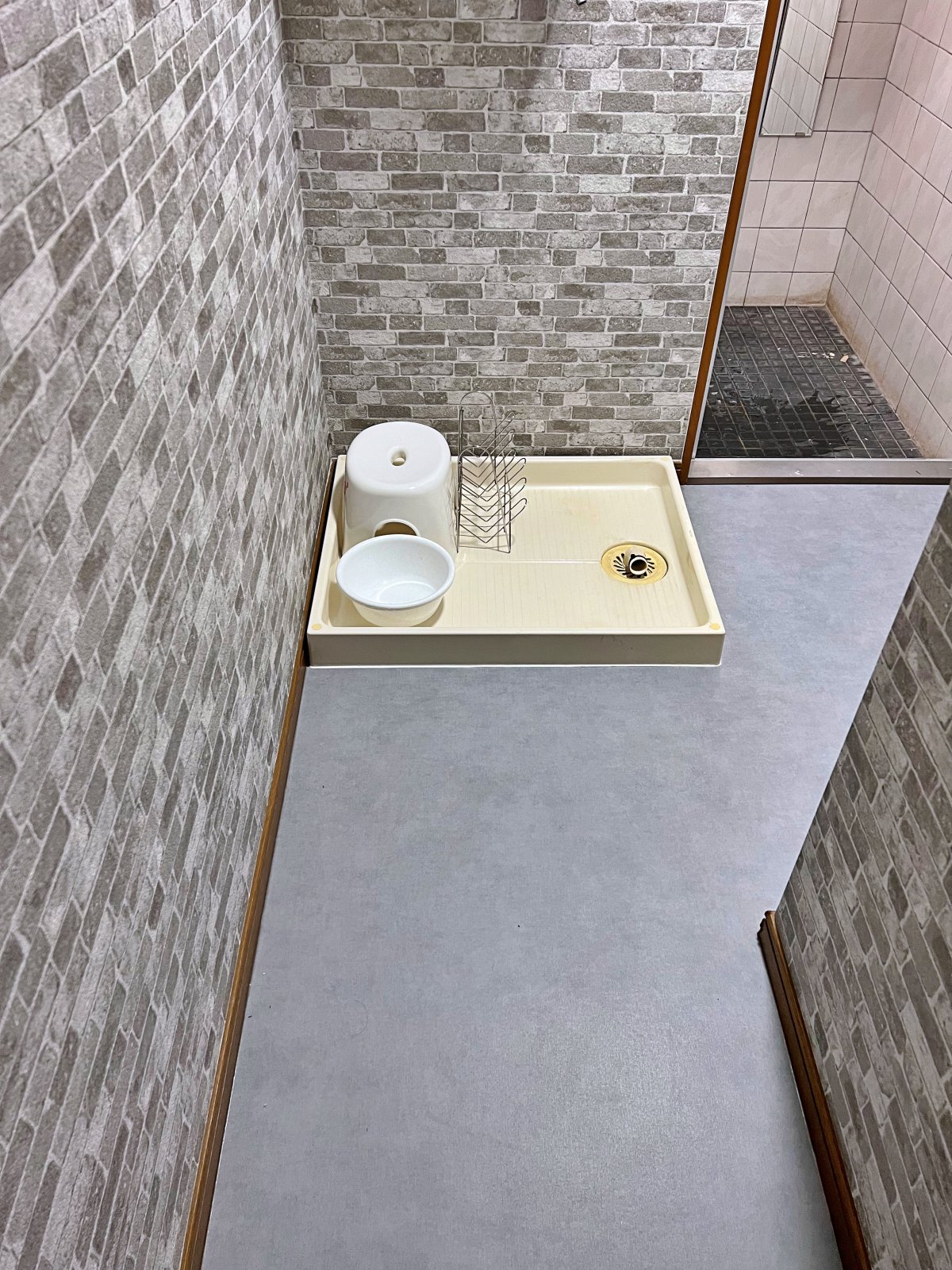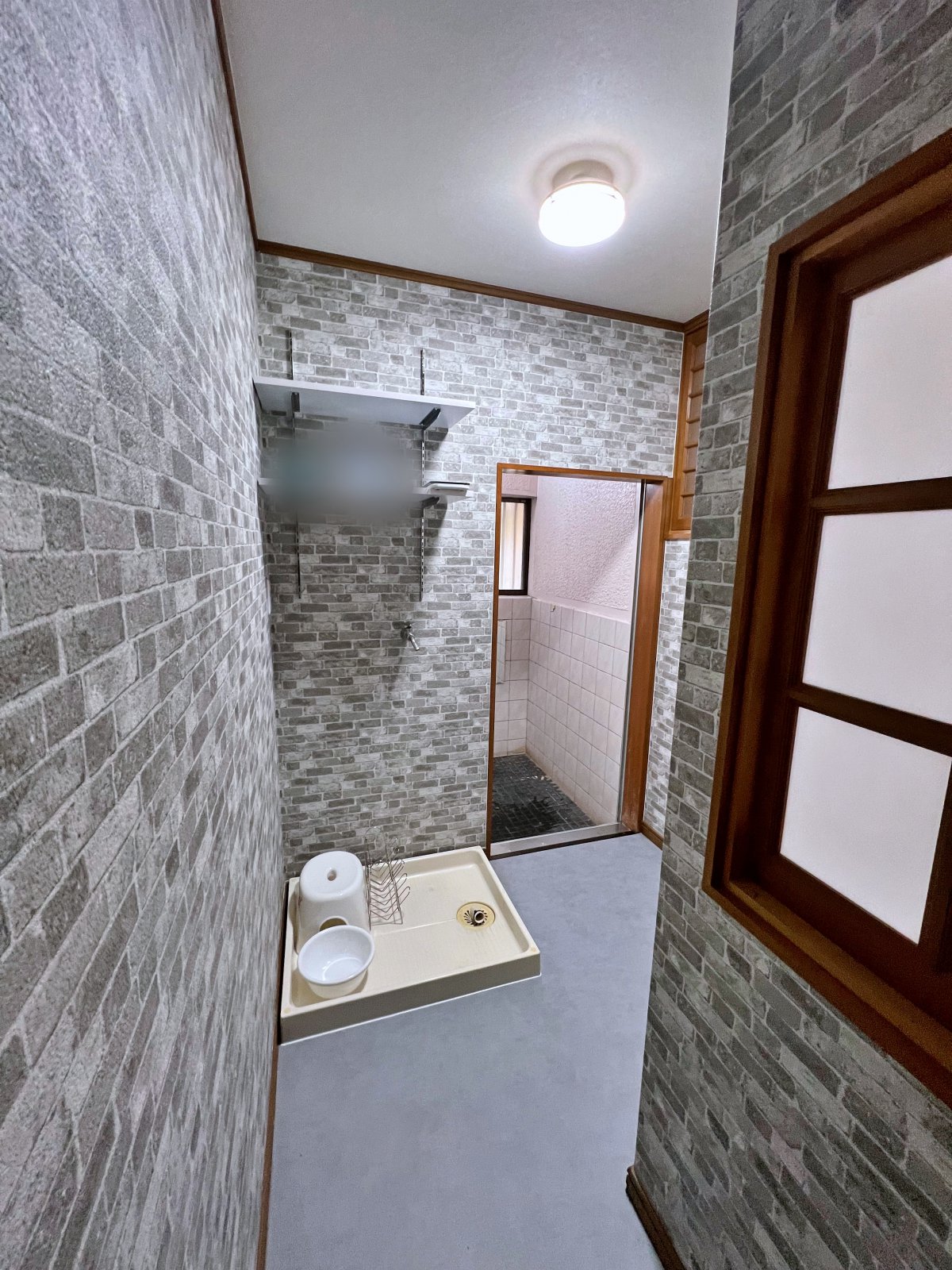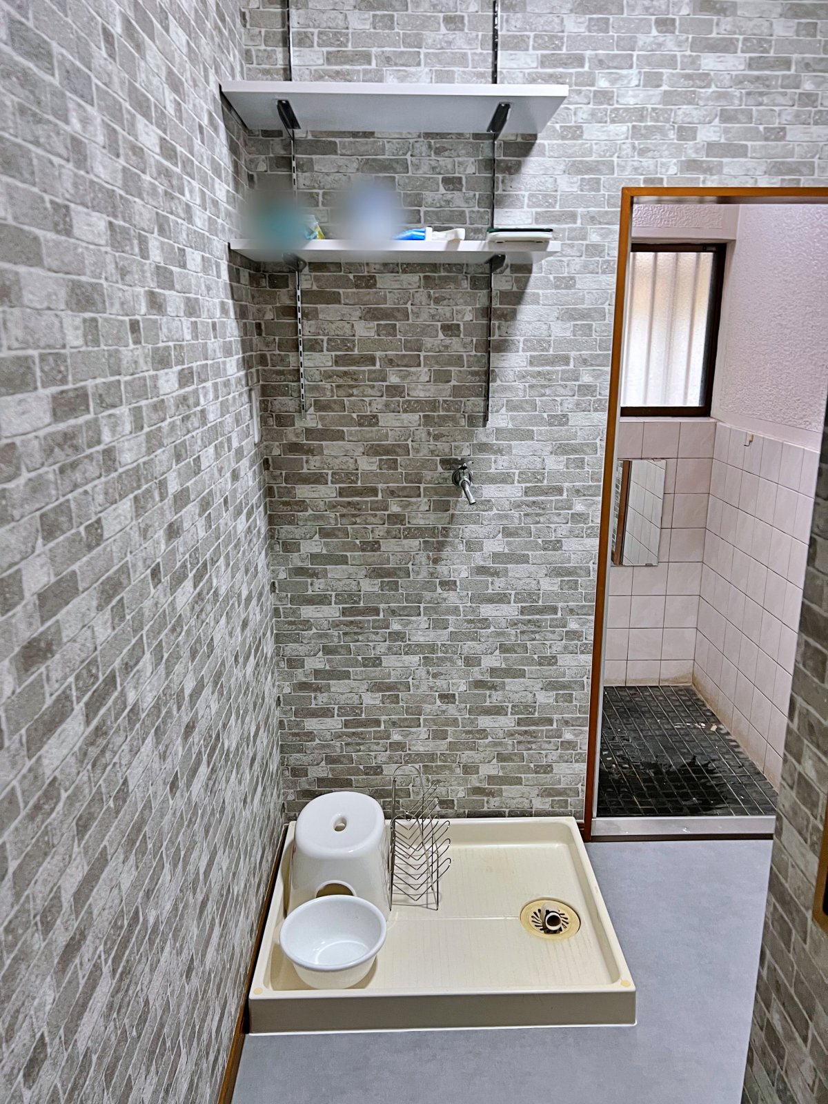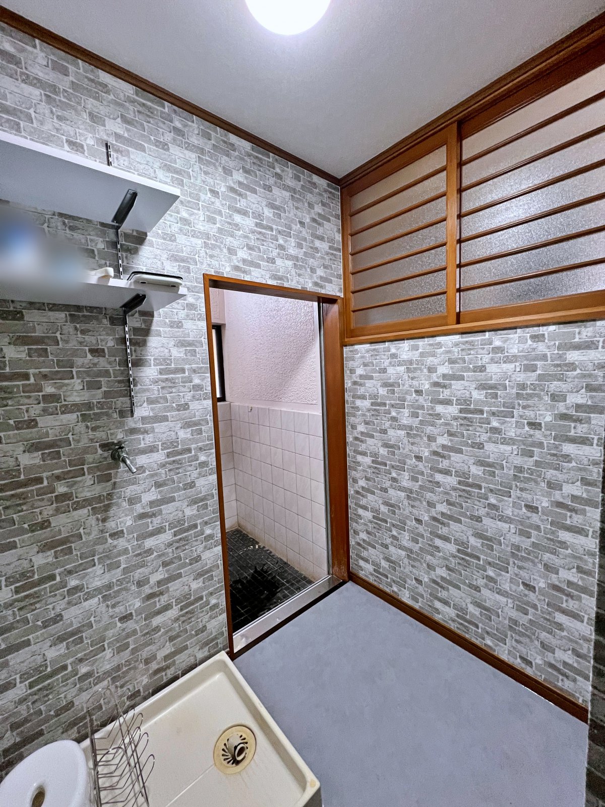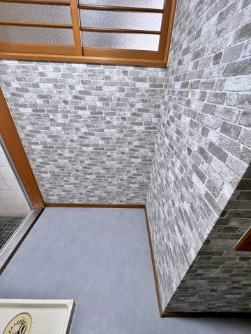 「水場なので、フローリングをやめてCFに、クロスはお母様がお好きな柄」をご提案させていただきました。