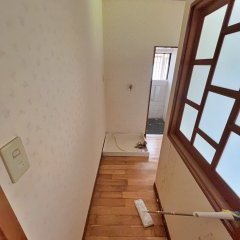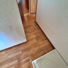 クロスが剥がれてきているのとフローリングが浮いていました。