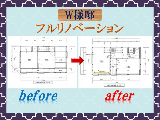全面改装、間取り変更、中古住宅、収納充実、交換、はり替え、修理、リフォーム