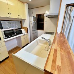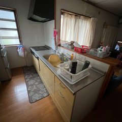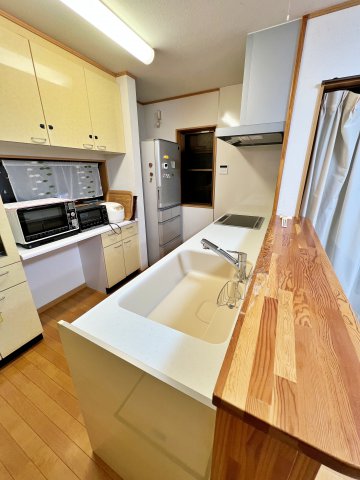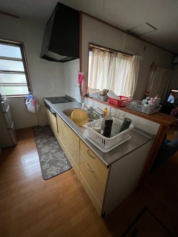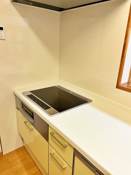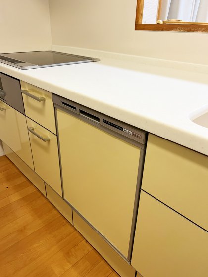 現地調査にお伺いしたところ、ブーツ型レンジフード、ステンレスシンク、カウンターだったので、お手入れが難しそう。