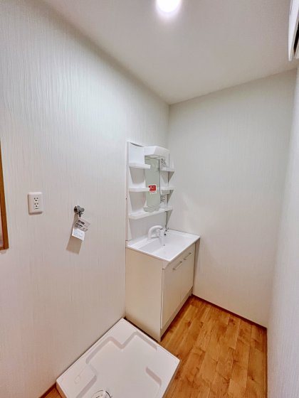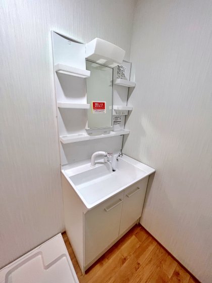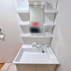 「寒さ対策として窓を無くし、鏡付きの洗面化粧台」ご提案させていただきました。