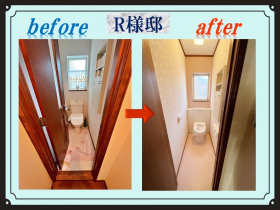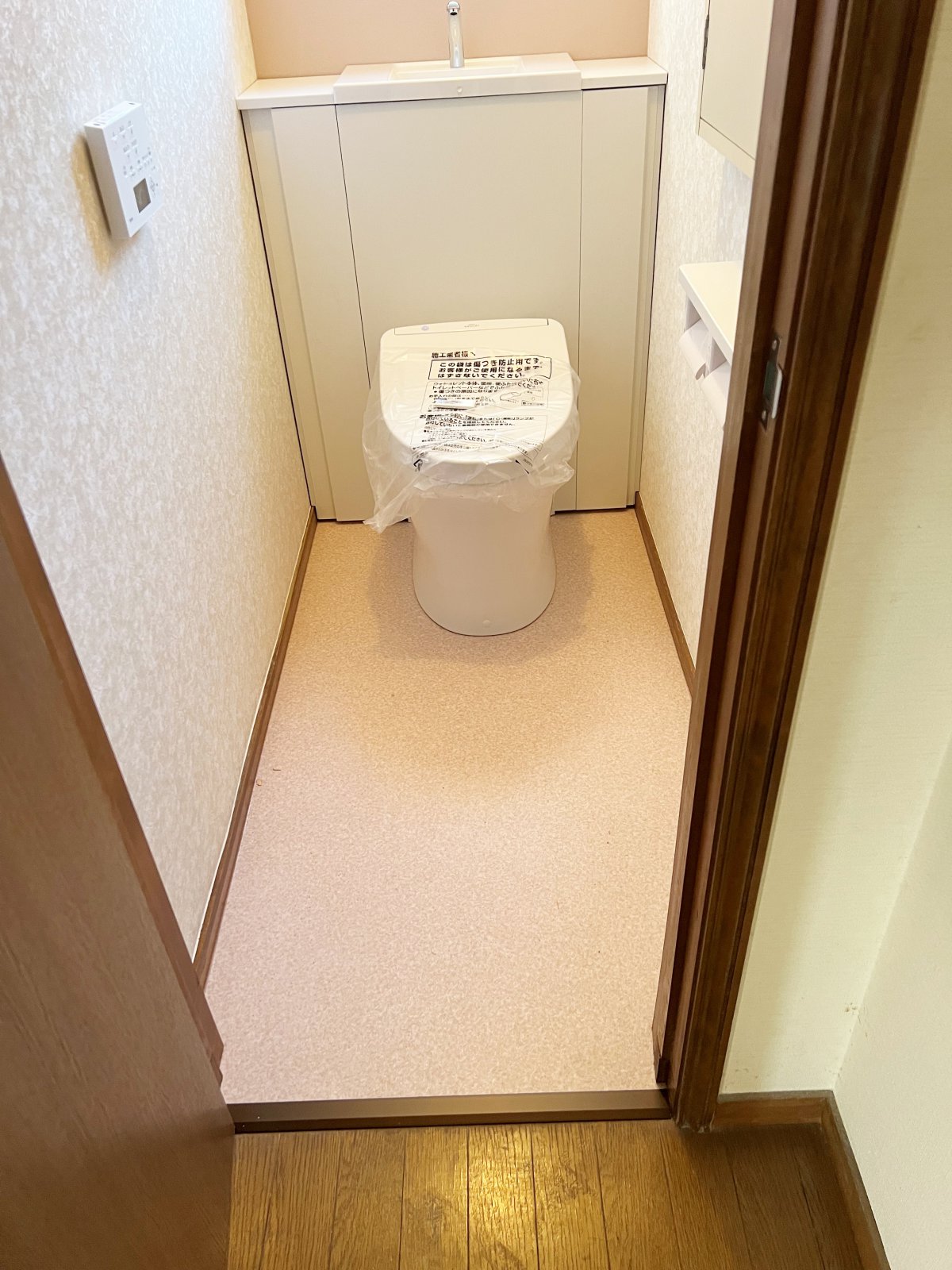 トイレの入替・クロス張替え後のご感想で、「内装もイメージにピッタリ!かわいいトイレになりました。」とのお声を頂き、弊社としても大変うれしく思います。ありがとうございます!