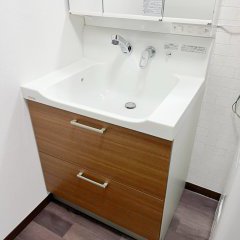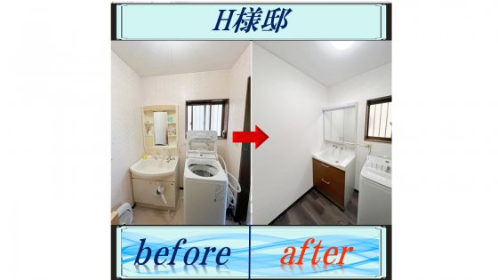 洗面入替後のご感想で、「収納が多く、すっきり見せる事が出来てうれしい」とのお声を頂き、弊社としても大変うれしく思います。ありがとうございます!