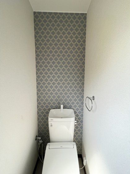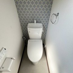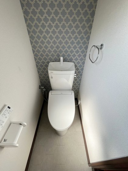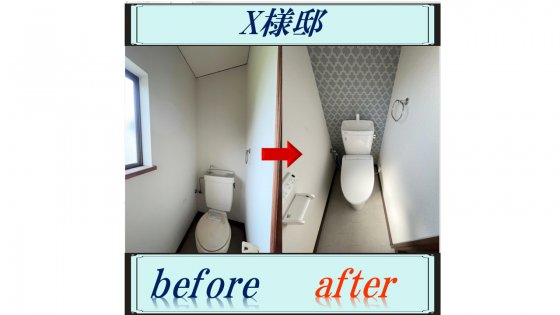 トイレ入替と内装リフォーム後のご感想で、「ウォシュレットが付いて、便利になりとても満足しています。クロスもお洒落になり、うれしいです。ありがとうございます。」とのお声を頂き、弊社としてもうれしく思います。ありがとうございます!